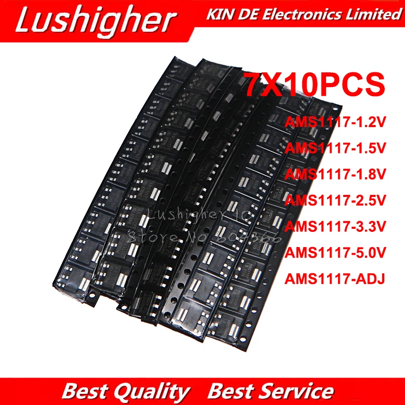 70 шт. 7 значений * 10 шт. AMS1117 регулятор напряжения комплект 1,2 в/1,5 В/1,8 в/2,5 в/3,3 В/5,0 в/1117 в/ADJ