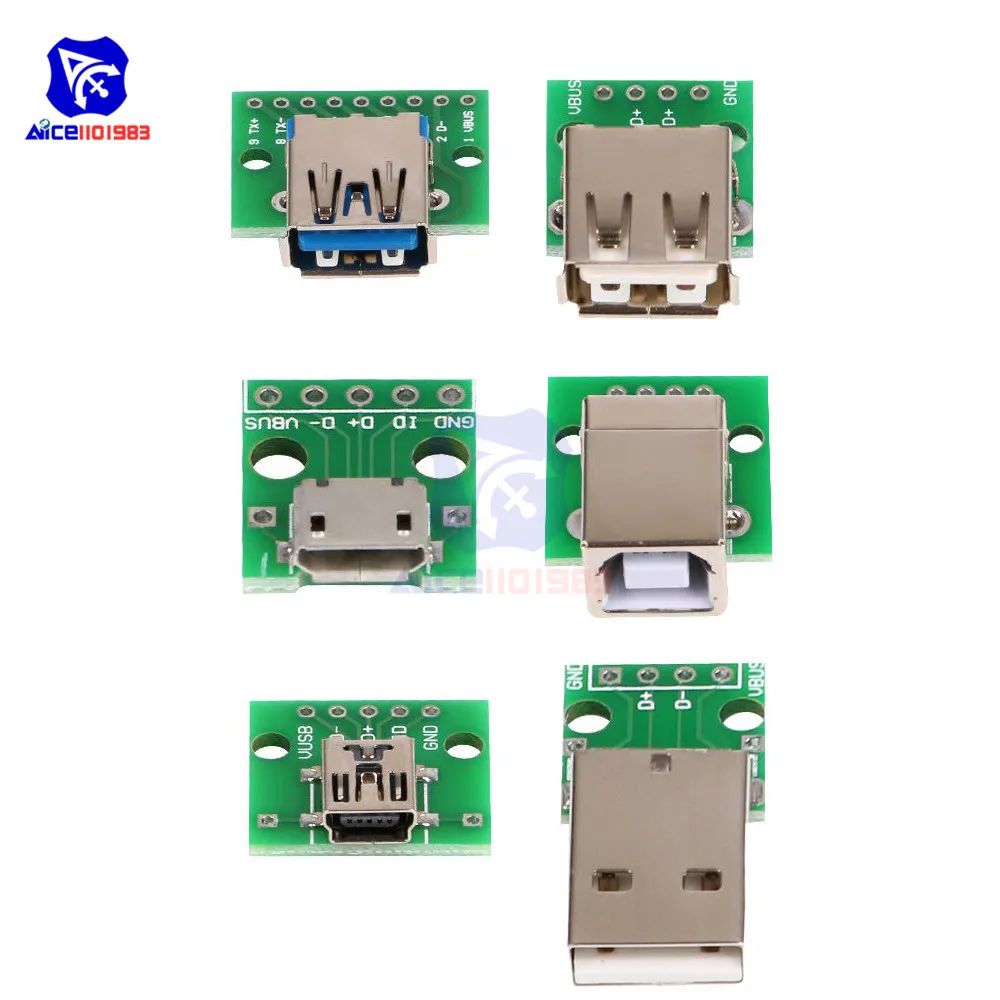 Micro USB/Mini USB/usb type A Male/usb type A женский интерфейсный адаптер до 2,54 мм DIP PCB адаптер конвертер Breakout Board модуль