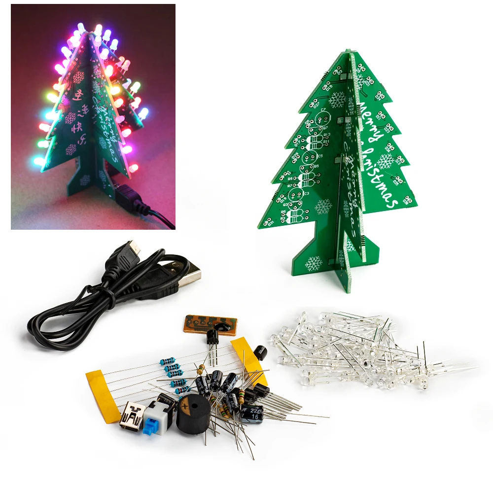Рождественские елсветодио дный Ки LED diy kit красочные Блики Музыка светодио дный светодиодные электронные DIY обучение сварка сборки запчасти