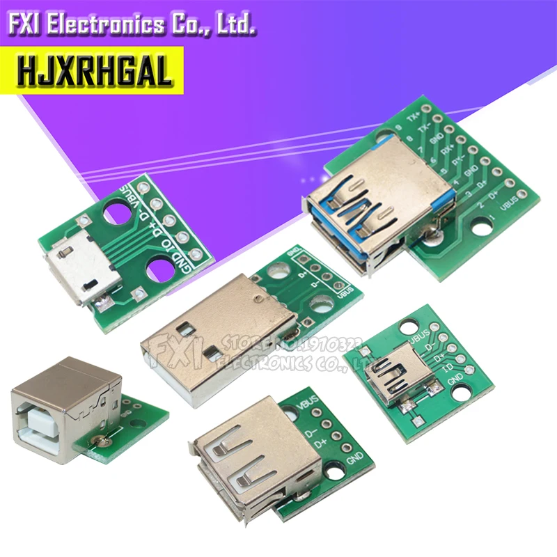 5 шт. USB Мужской разъем/MINI MICRO USB для DIP адаптер 2,54 мм 5pin Женский Разъем b Тип USB2.0 Женский PCB конвертер