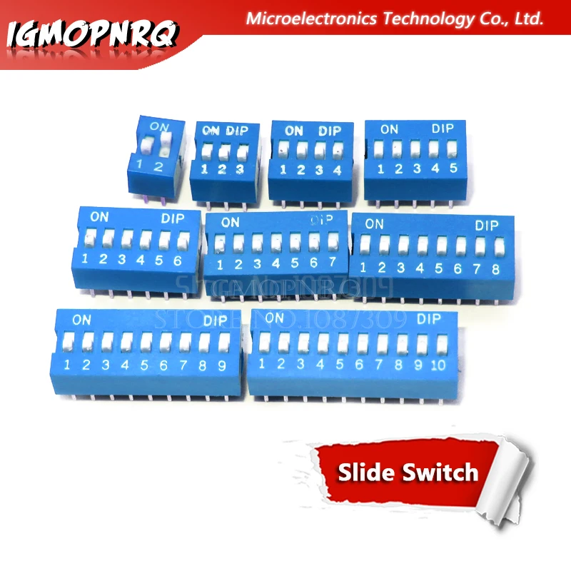 10 шт. модуль переключателя Скользящего Типа 1 2 3 4 5 6 7 8 9 10 12 бит 2,54 мм положение способ погружения синий шаг тумблер синий Щелчковый выключате...