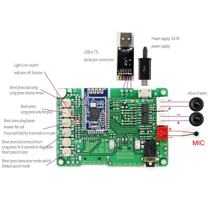 Bluetooth усилитель доска V5.0 стерео передача BK3266 модуль приема и передачи по одному переименована кнопочный переключатель