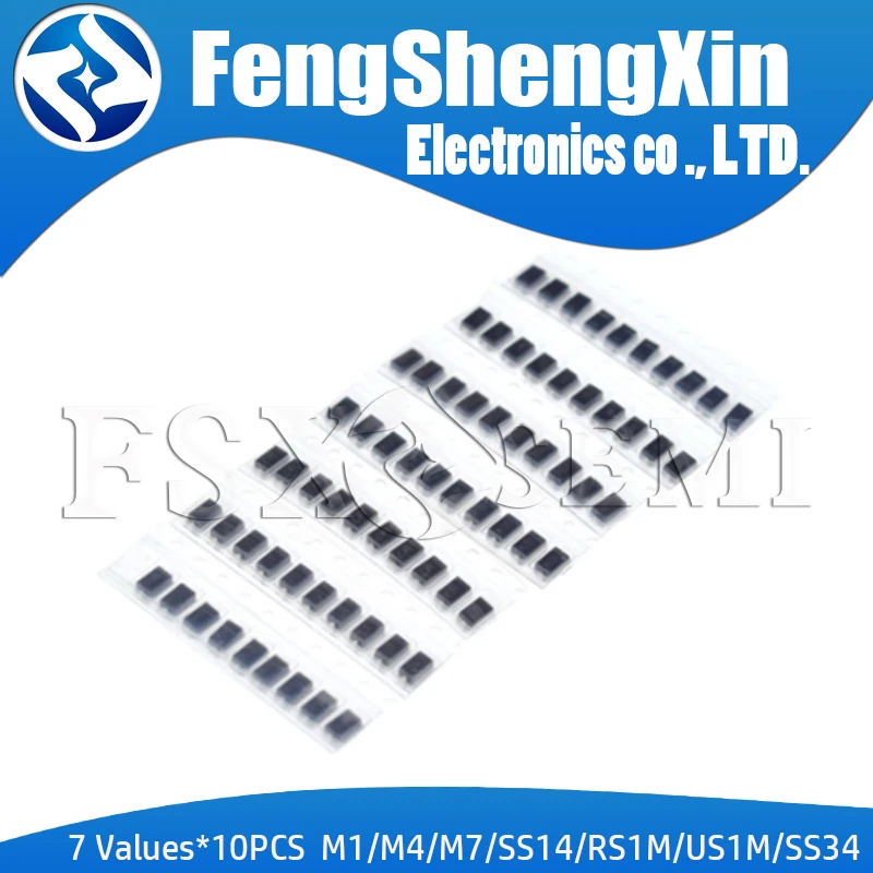 70 шт./лот 7values * 10 шт комплект диод Шоттки комплект обновления посылка SMD M1 1N4001 M4 1N4004 M7 1N4007 SS14 US1M RS1M SS34 7