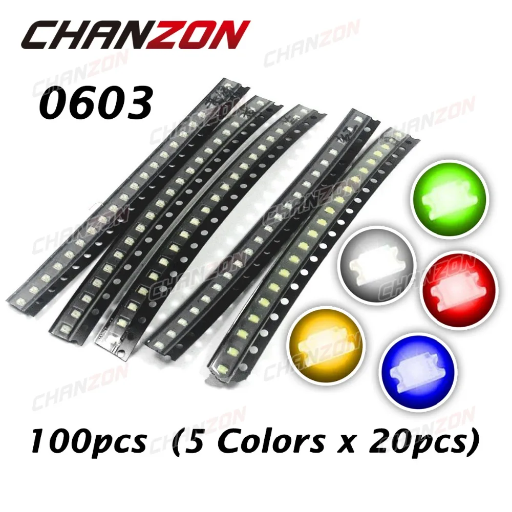 100 шт 0603 (1608) SMD светодиодный чип Ассорти Комплект 20mA синий и красный цвета белый зеленый желтый светодиод пакет светильник SMT-светящиеся
