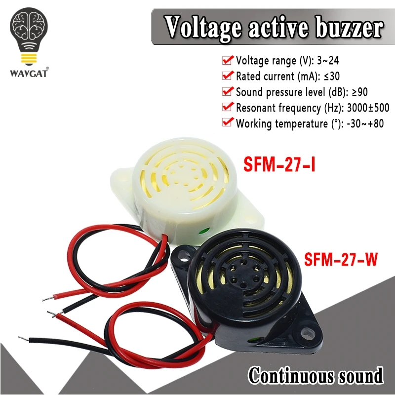 WAVGAT 95DB сигнал тревоги высокой частоты переменного тока 3-24V 12V Электронный звуковой сигнал тревоги прерывистый непрерывный звуковой сигнал для Arduino автомобиля Ван SFM-27