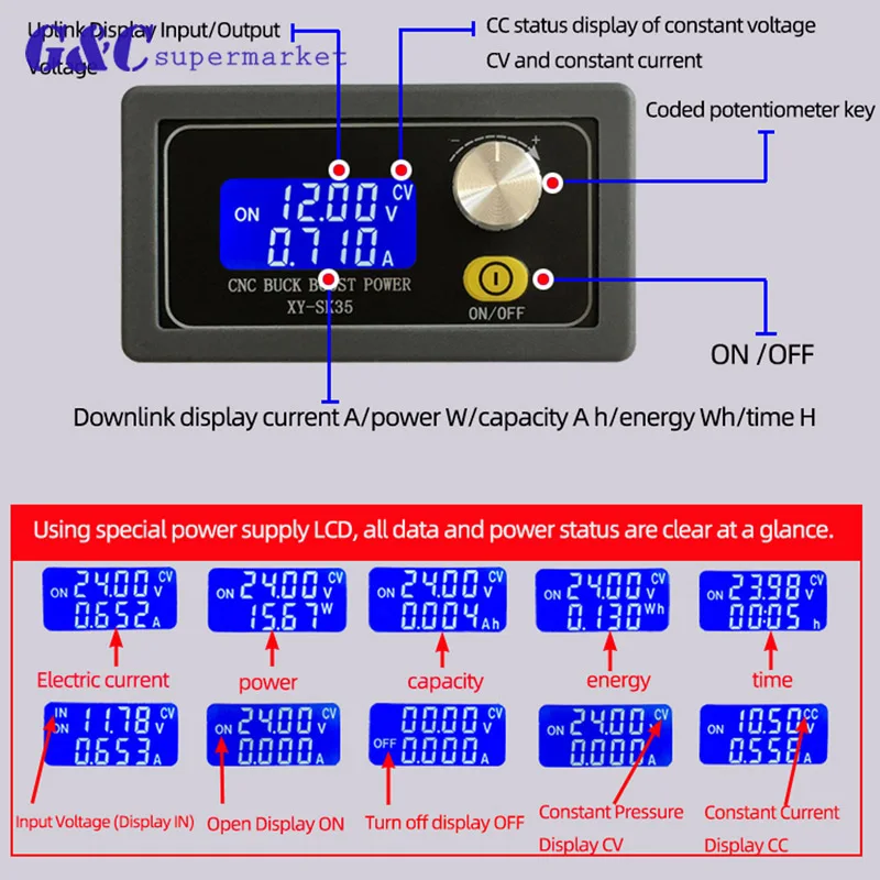 DC-DC цифровой ЖК-дисплей Постоянное Напряжение Ток понижающий программируемый контроль модуль питания амперметр
