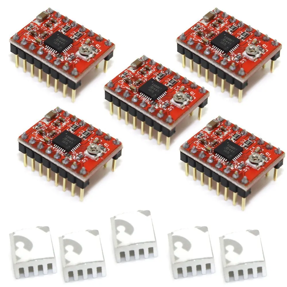 5 шт./лот красный StepStick A4988 Драйвер шагового двигателя (с радиатором, 1A) для 3D-принтеры Бесплатная доставка
