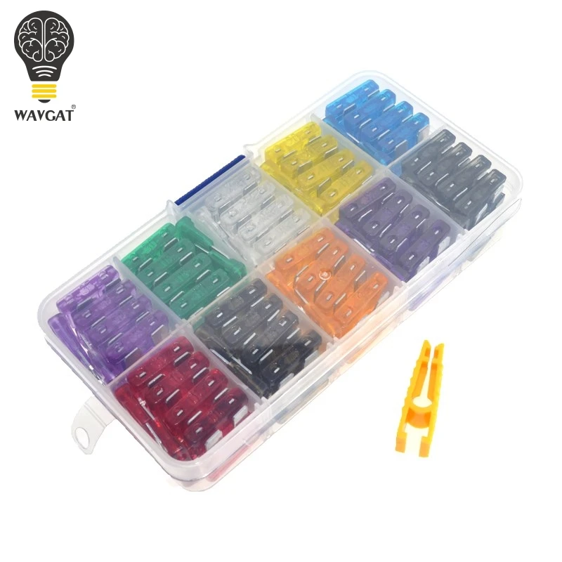 WAVGAT Средний предохранители для автомобиля 2A 3A 5A 7.5A 10A 15A 20A 25A 30A 35A + клип с Пластик коробкой ассортимент автоматический плоский предохранитель внедорожник