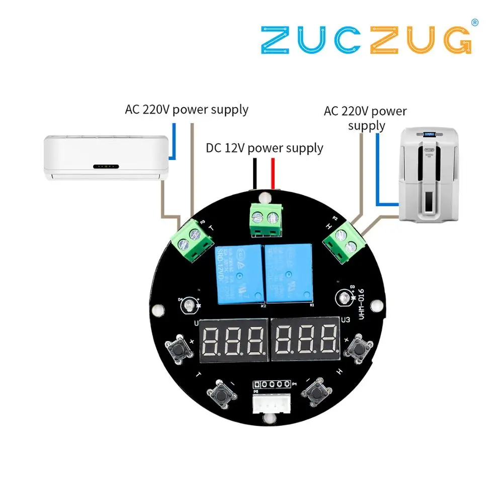 VHM-016 термостат контроль температуры и влажности термометр контроллер гигрометра модуль DC 12 В светодиодный цифровой дисплей двойной выход