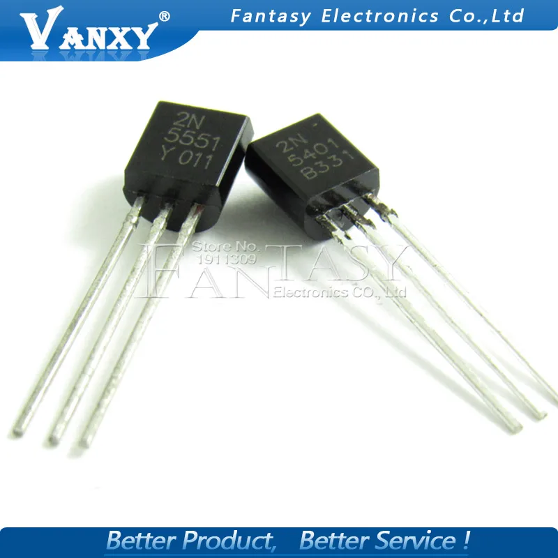 100 шт. 2N5551 2N5401 5551 5401 TO-92 (50 шт. * 2N5401 + 50 шт. * 2N5551) TO92 биполярного транзистора-биполярный транзистор с самонастраиваемым устройством Gen Pr Amp