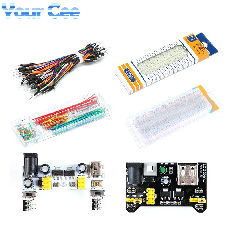MB102 модуль питания + прозрачная белая макетная плата 830 точек без пайки прототип хлеба + 65 шт. перемычки + 140 шт. перемычки с коробкой
