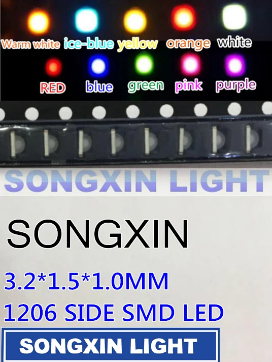 100 шт. 3216 3010 3016 1206 1204 правый угол сбоку Белый Красный Синий Зеленый Желтый Розовый Оранжевый УФ-фиолетовый теплый белый RGB ICE-blue IR
