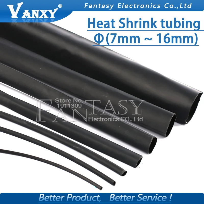 2 метра термоусадочная трубка 7 мм 8 мм 9 мм 10 мм 11 мм 12 мм 13 мм 14 мм 15 мм 16 мм черная изоляционная втулка