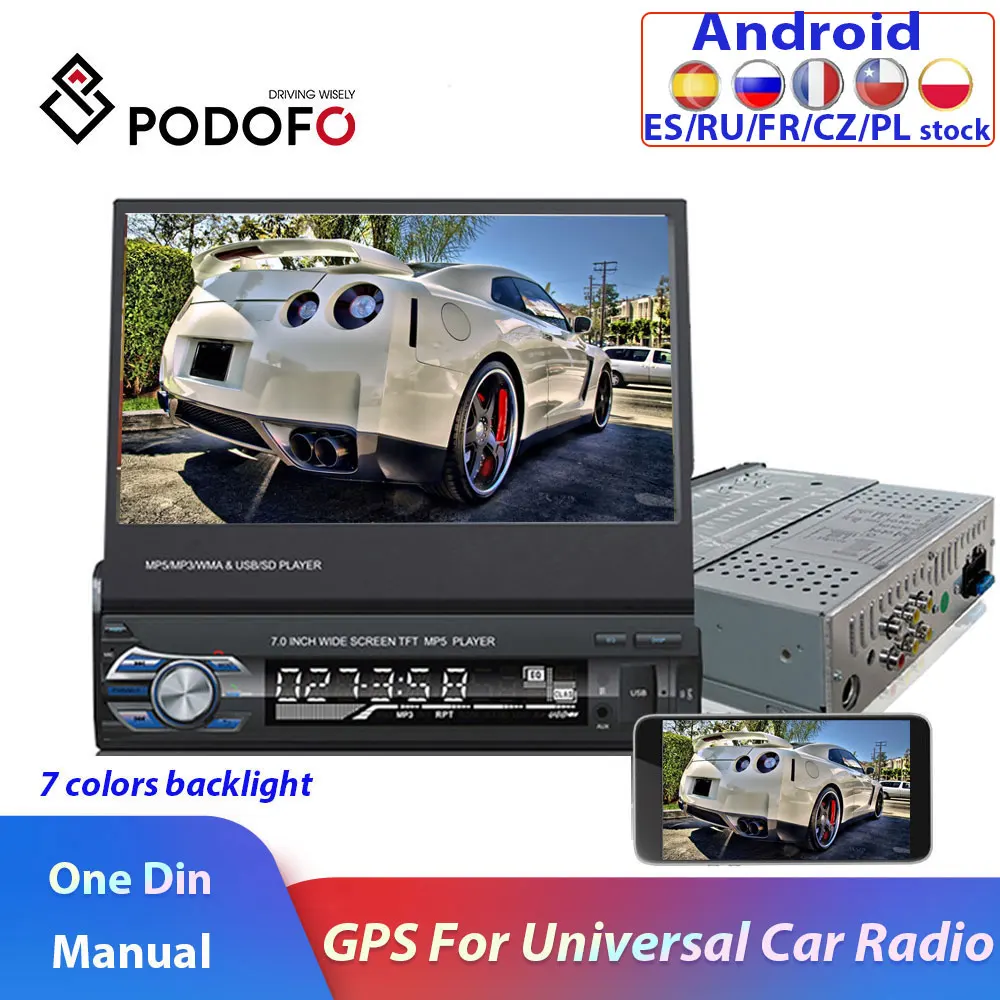 Автомагнитола Podofo one Din, 1DIN, Android, Автомобильный мультимедийный плеер, gps, Navi, Авторадио, аудио стерео 1DIN, Универсальная автомобильная стереосистема
