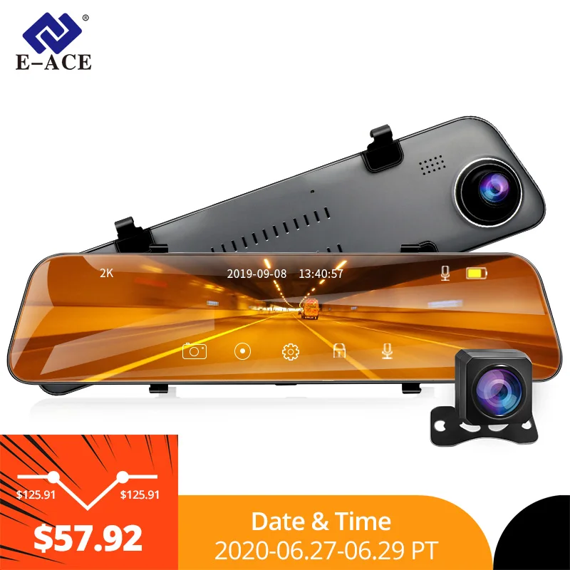 E-ACE A38 2K Видеорегистраторы для автомобилей 12 дюймов сенсорный экран ips зеркало заднего вида Двойной объектив камера приборной панели автомобиля Камера G-sensor видео Регистраторы с задний объектив для камер заднего вида