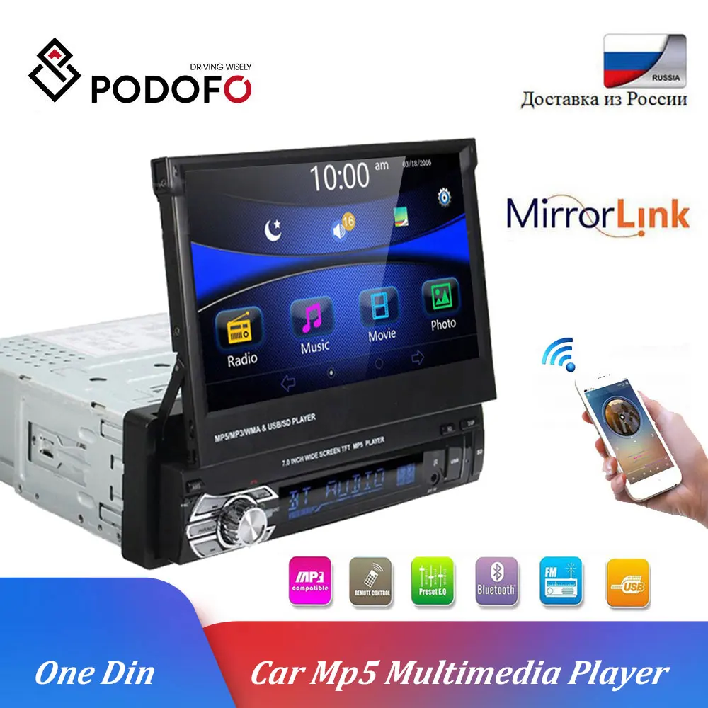 Podofo 1 din мультимедийный плеер Bluetooth стереонаушники автомобильное радио без gps 1DIN 7 "Универсальный Выдвижной авторадио FM USB MP5 плеер