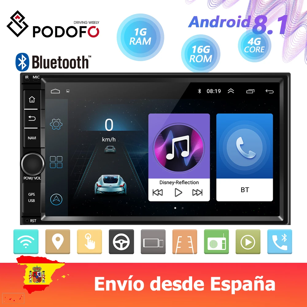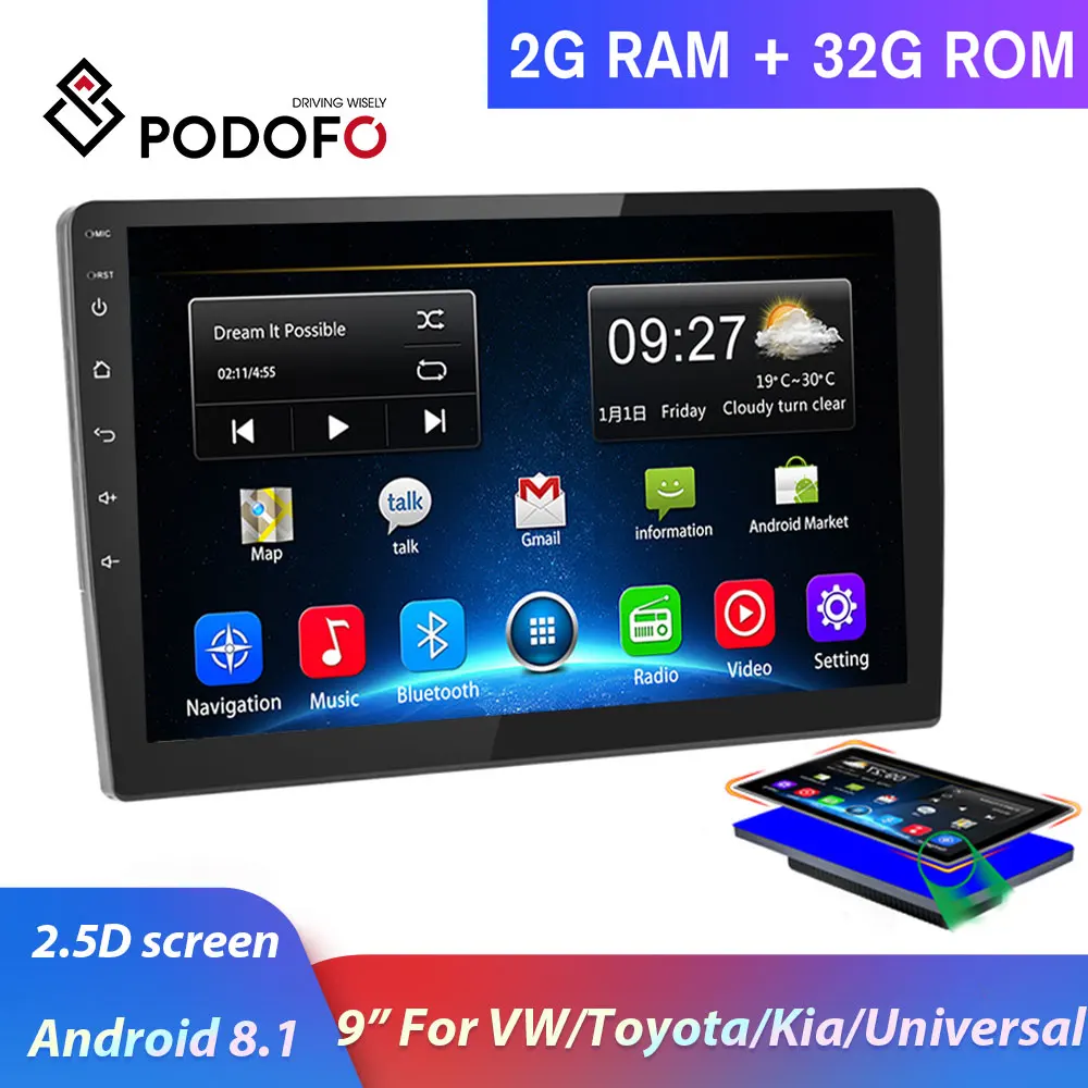 Podofo Android 8,1 Автомобильный мультимедийный плеер 2Din gps Navi автомобильный Радио Wifi автомобильный радиоприемник с Bluetooth Универсальное автомобиль...