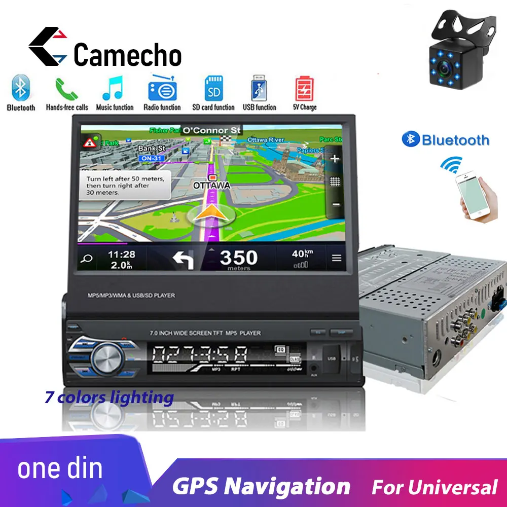 Camecho 1din автомобильный радиоприемник 7 "HD сенсорный экран gps Naviation Авторадио Bluetooth Автомобильный мультимедийный плеер для Универсальный рычаг...
