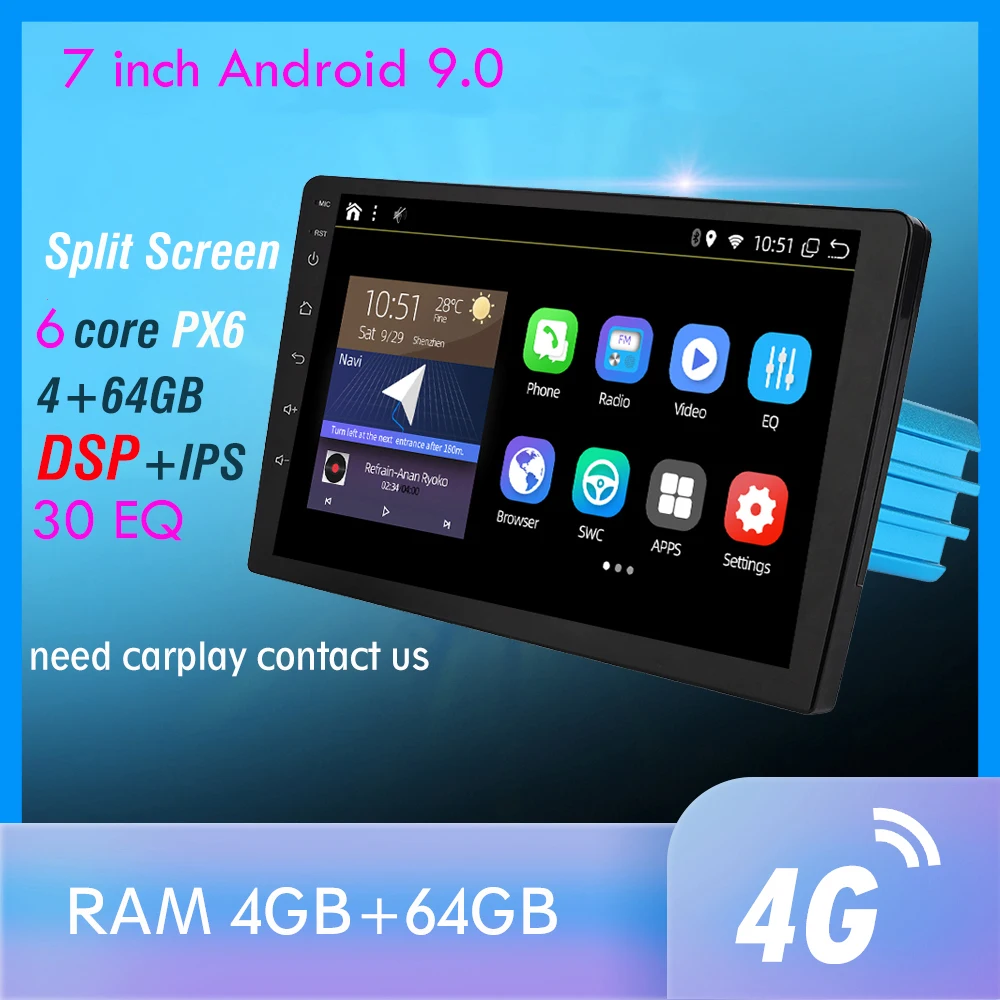 1din 7 дюймов DSP Android 9 PX6 мультимедийный DVD видео плеер GPS навигация автомобильное радио стерео Wifi BT HDMI Carplay TV OBD DAB 4G + 64G