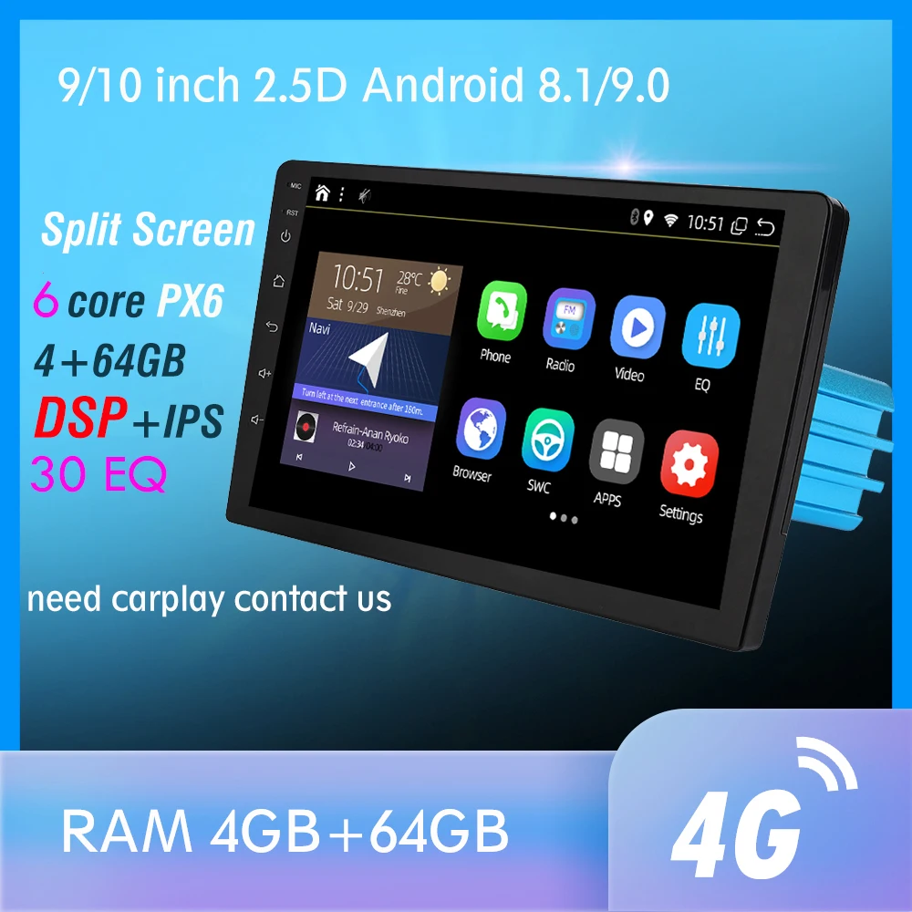 2 din Android 9,0 Восьмиядерный PX6 автомобильный Радио Стерео gps Navi Аудио Видео плеер блок ПК Wifi BT HDMI AMP 7851 OBD DAB + SWC 4G + 32G
