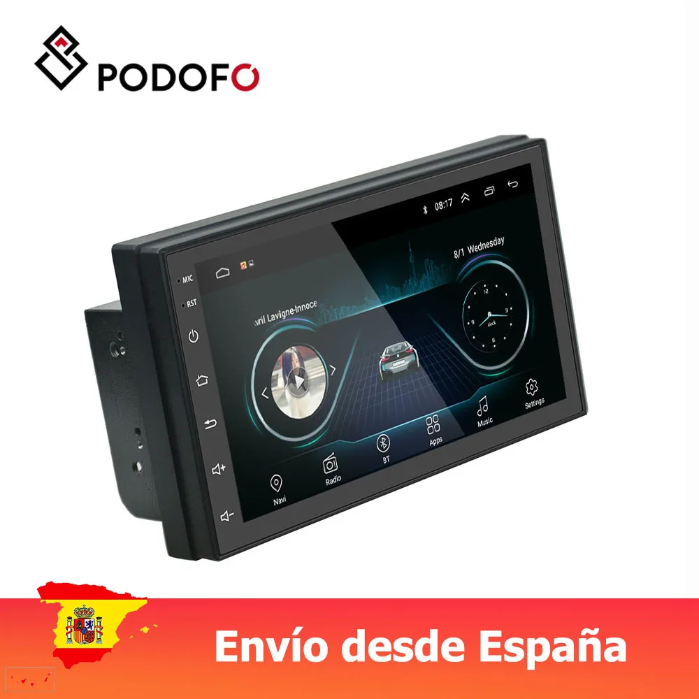 Podofo Android 8,1 автомобильный мультимедийный плеер 2 din 7 ''сенсорный fm-радио с Bluetooth gps wifi 1024*600 разрешение экрана