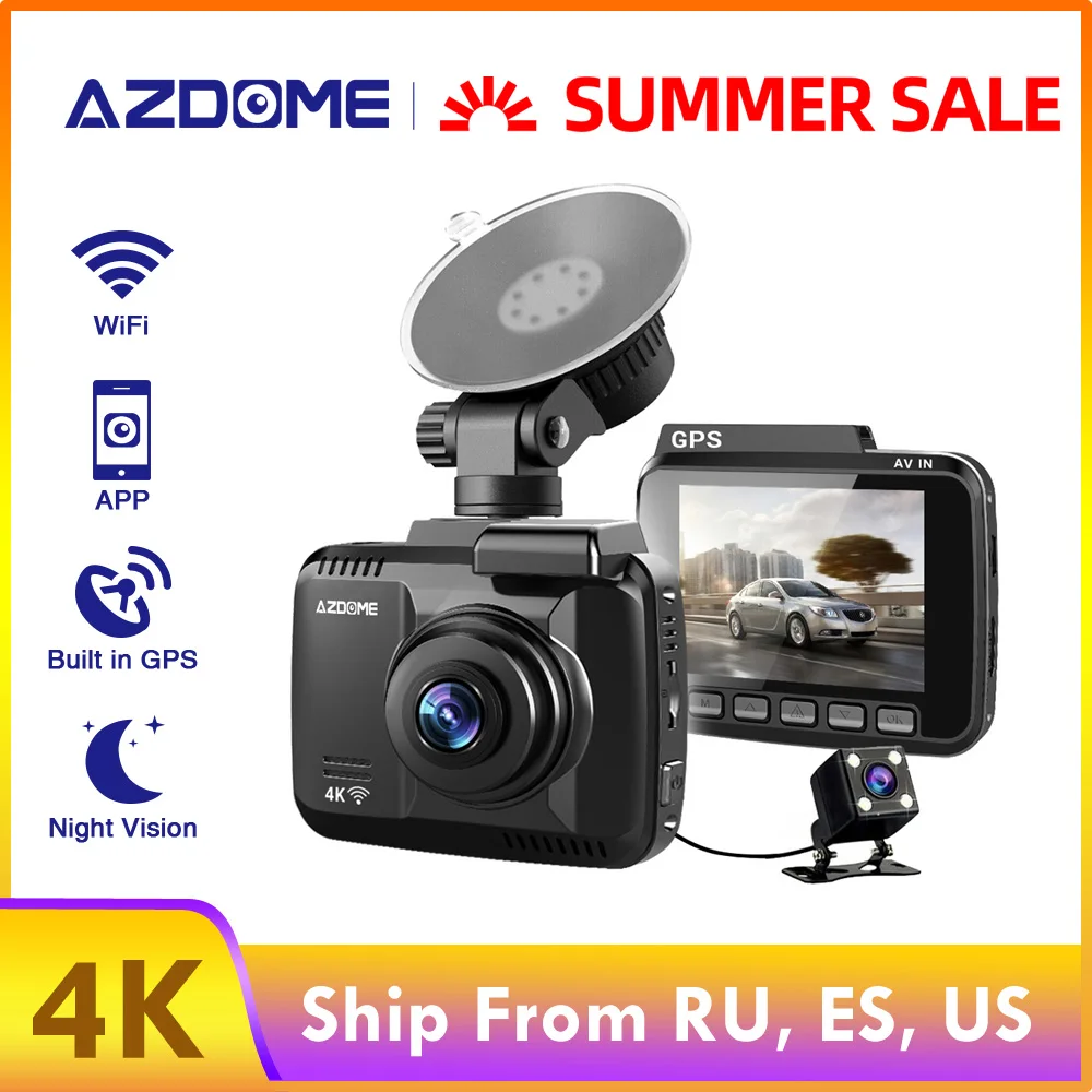 AZDOME GS63H автомобиля регистраторы 4 К 2160 P тире Камера Двойной объектив Встроенный gps DVR Регистраторы Dashcam с Wi-Сенсор петли Запись