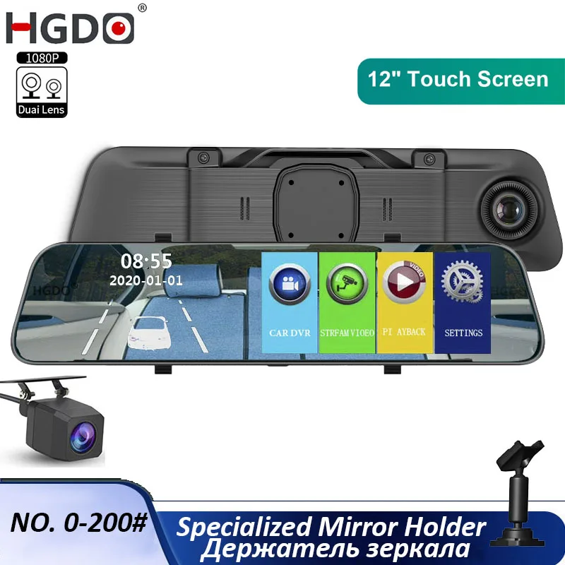 HGDO видеорегистратор 12 дюймов камера с сенсорным потоком зеркало с камерой заднего вида FHD 1080P видеорегистратор Автомобильный регистратор Dvr