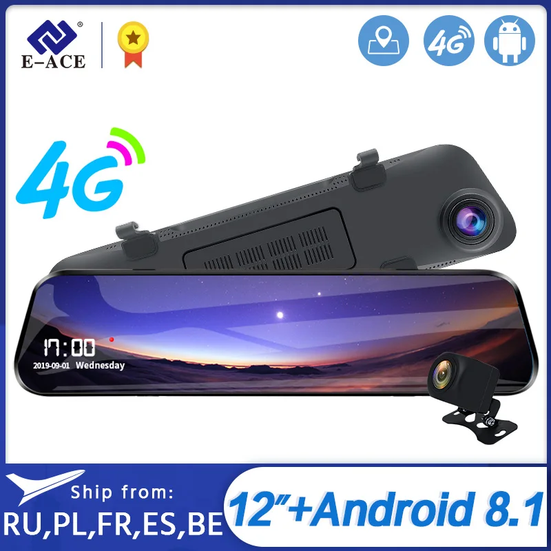 E-ACE ADAS 4G 12 "ips Автомобильный видеорегистратор Камера Зеркало видеорегистратор Full HD 1080P зеркало заднего вида Android WiFi gps