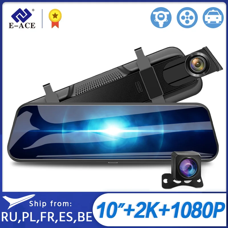 E-ACE A37 Автомобильный видеорегистратор 10,0 дюймов зеркало заднего вида 2K видеорегистратор 1080P Автомобильная камера с камерой заднего вида видеорегистратор