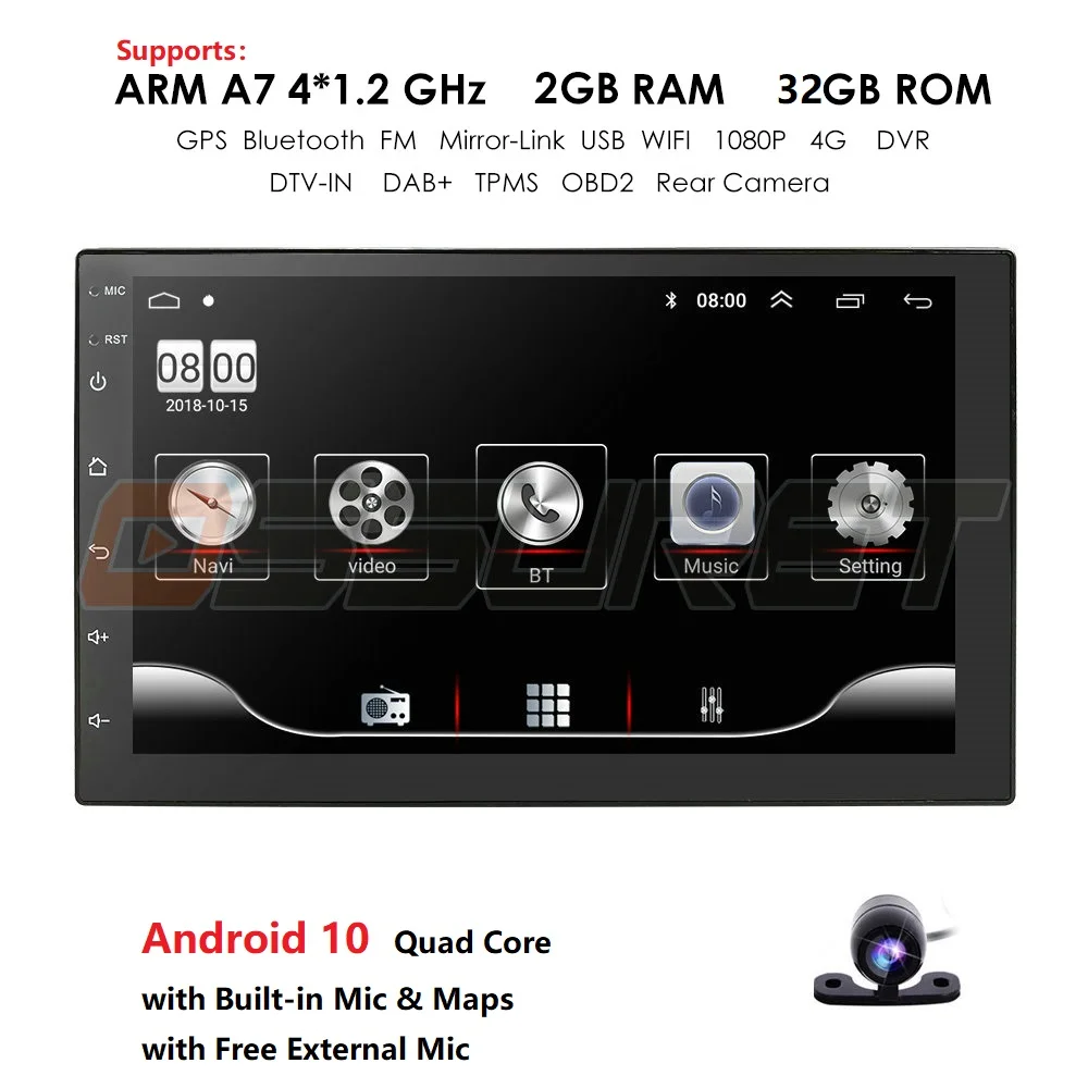 2Din Android 9,0 Автомобильный мультимедийный радио плеер 7 "1024*600 универсальный для Nissan vw gps Навигация BT Авторадио Стерео аудио плеер
