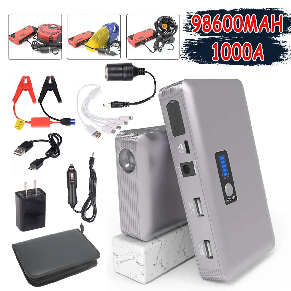 3 цвета, высокая мощность, 98600 мАч, 12 В, автомобильный стартер, портативный, тип-c, USB, аварийный внешний аккумулятор, аккумулятор, бустер, 1000A, по...