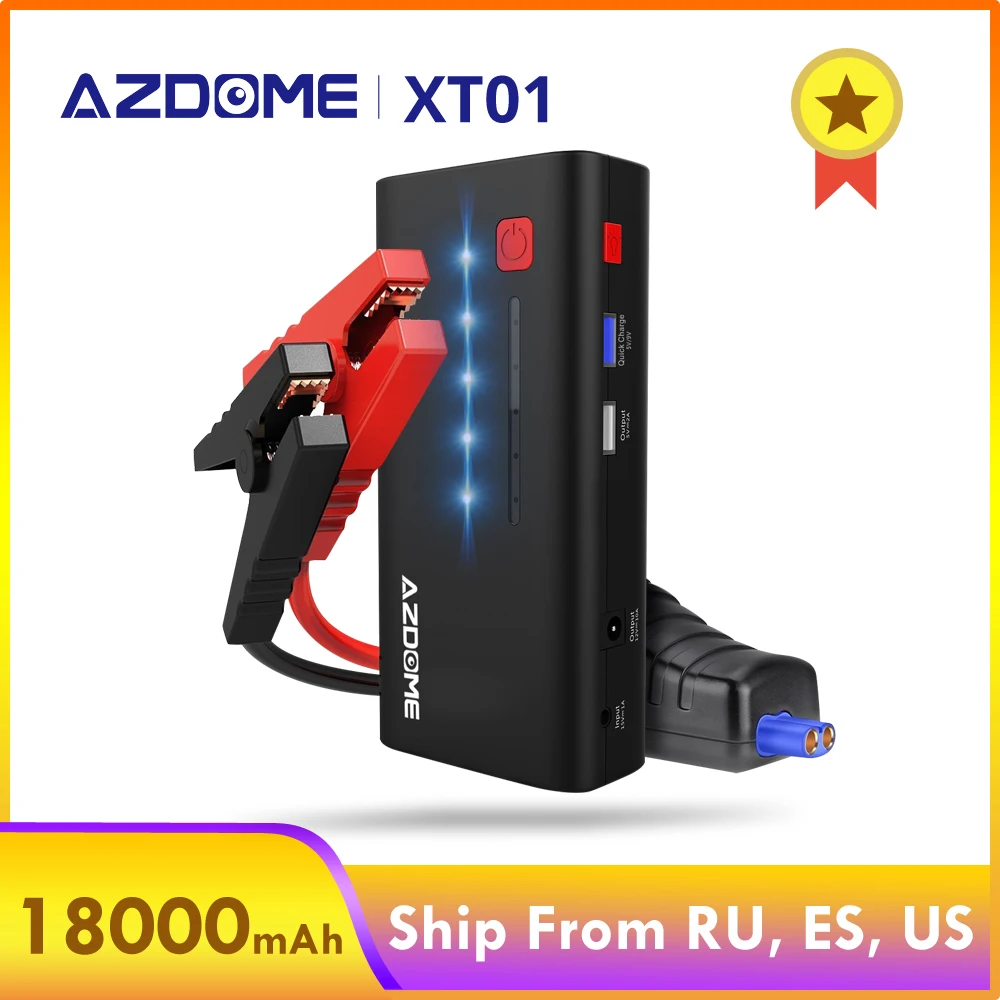 Автомобильный стартер AZDOME XT01 18000 а 3,0 мАч (л газовый или л дизельный двигатель) Внешний аккумулятор с быстрой зарядкой порт светодиодный фона...