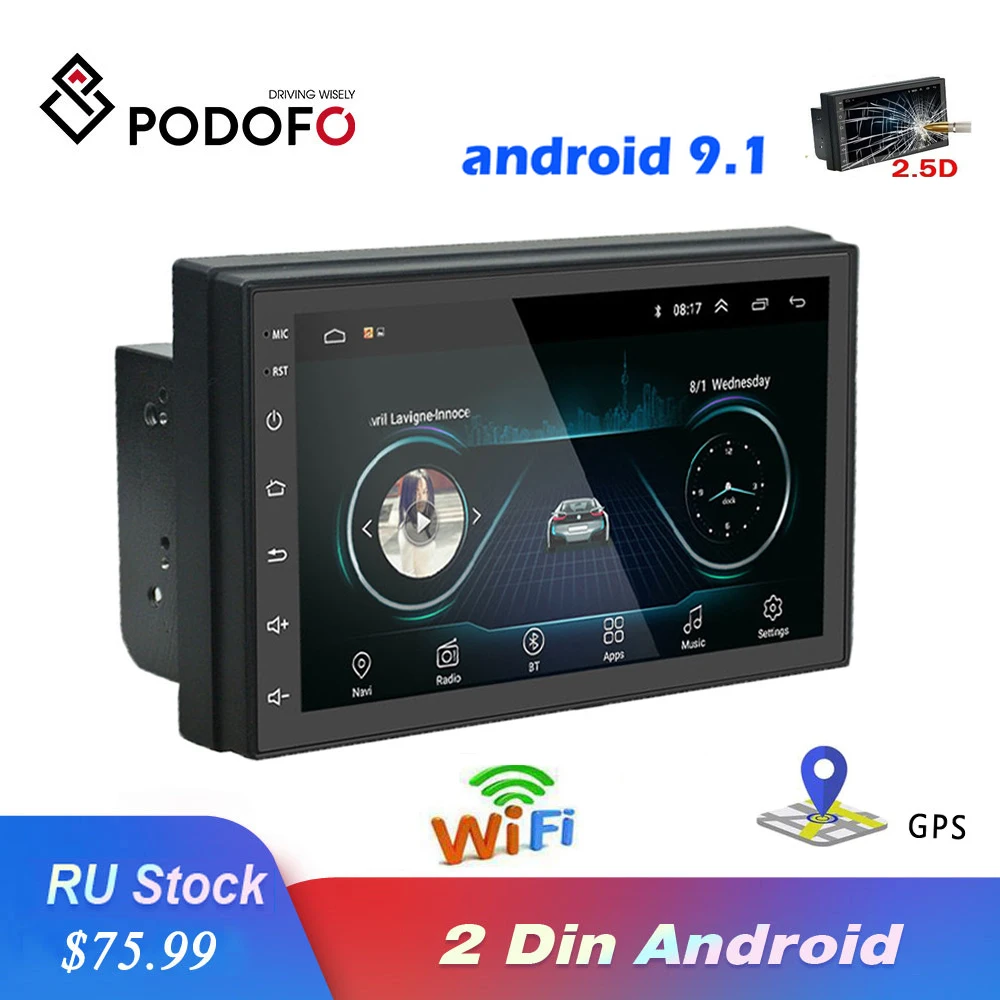 Автомобильное радио Podofo, 2 din, gps, Android, Авторадио, Wi-Fi, USB аудио, 2din, 7-дюймовый сенсорный экран, Универсальные мультимедийные проигрыватели MP5, Bluetooth, FM