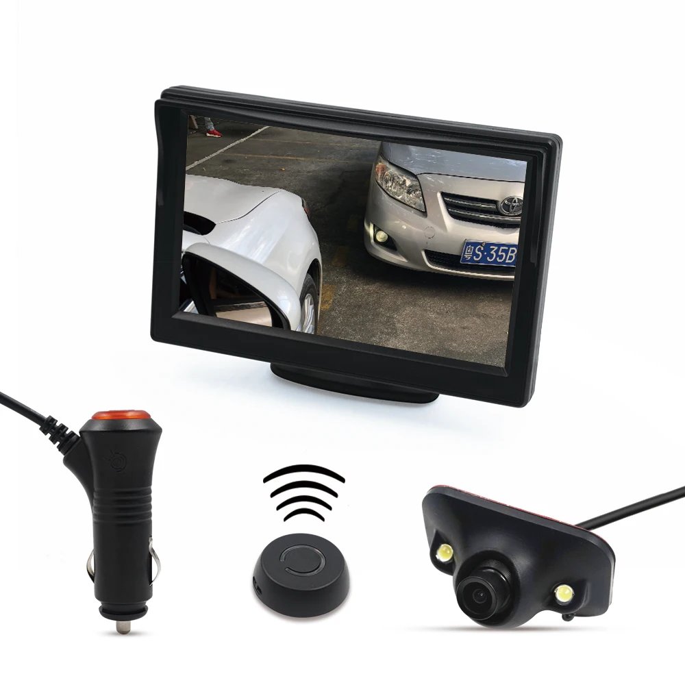 Автомобиль беспроводной Кнопка управление Diy установить слепое пятно detecion камера бокового вида + 5 "HD парковка мониторы DVD обнаружения Видим...