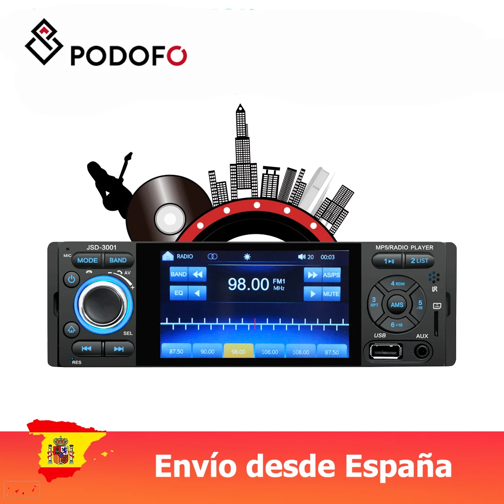 Podofo 1 din автомагнитола 4 ''Автомобильный видео плеер MP5 зеркальное соединение емкостный сенсорный экран цифровой дисплей с камерой заднего вида