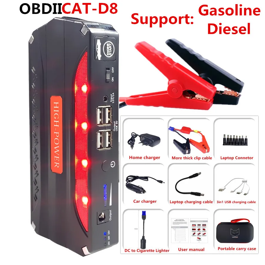 Новый автомобильный стартер высокой емкости 4USB power Bank автомобильный 12V многофункциональный компас фонари SOS автомобильное зарядное устройс...