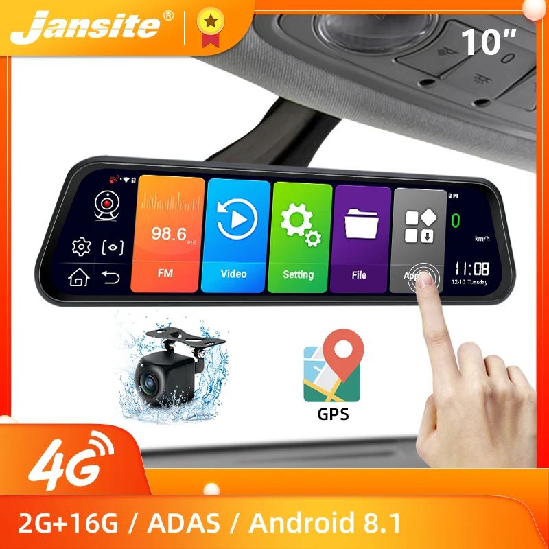 Jansite 10 "4G Автомобильный видеорегистратор Камера заднего вида сенсорный экран Android 8,1 gps навигация Dashcam рекордеры зеркало заднего вида резервная камера