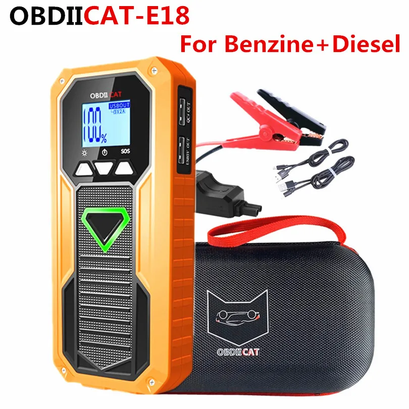 OBDIICAT E18 многофункциональное автомобильное пусковое устройство power Bank портативное 12 В 600А пиковое автомобильное зарядное устройство автомобильный аккумулятор для грузовика