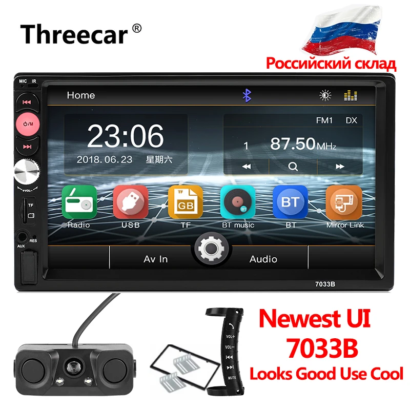 7033B USB TF FM AUX Сенсорный экран стерео радио 2 DIN MP5 плеер для r заднего вида Камера удаленного Управление bluetooth зеркало ссылка