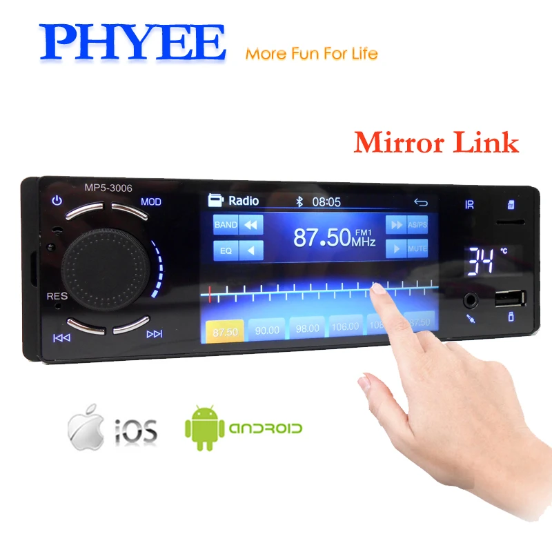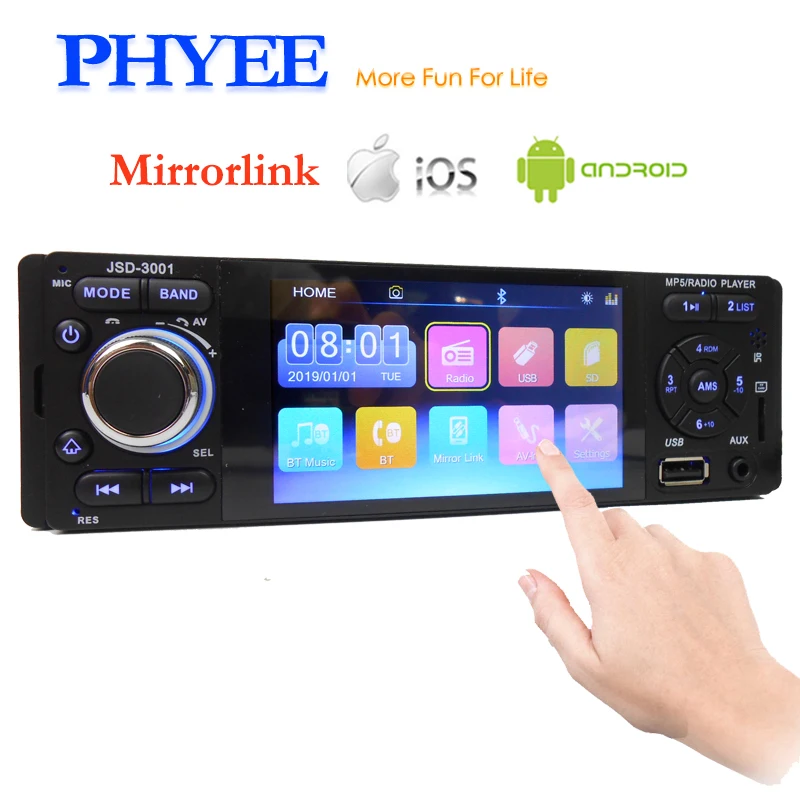 4 "сенсорный экран автомобиля стерео радио 1 Din Зеркало Ссылка Авторадио Bluetooth MP5 Аудио Видео плеер USB MP3 TF ISO головное устройство JSD-3001