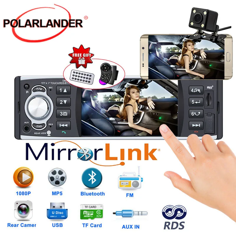 Авторадио плеер 1 din 12 v 4,1 дюймов сенсорный экран Авто Аудио Зеркало Ссылка RDS Bluetooth Камера заднего вида стерео
