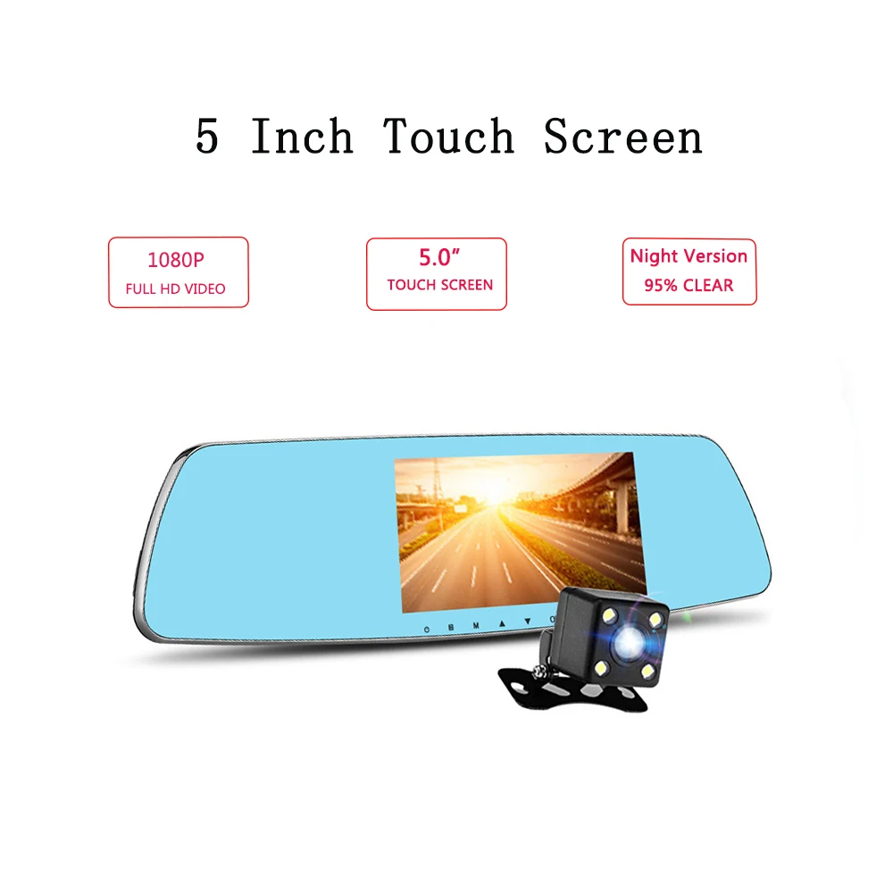 Oversea 7 дюймов 1080P HD Автомобильный видеорегистратор с двумя объективами камера заднего вида Зеркало для вождения видео рекордер ночное время