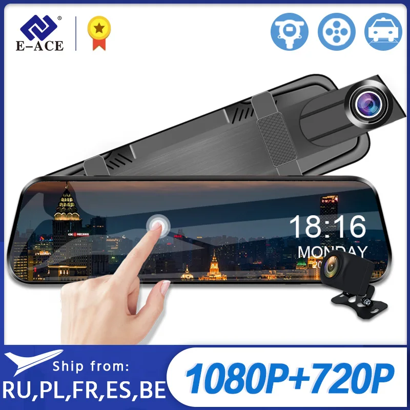 E-ACE Автомобильный видеорегистратор Камера 10 дюймов сенсорный экран Потоковое вещание зеркало заднего вида видеорегистратор FHD 1080P регистра...