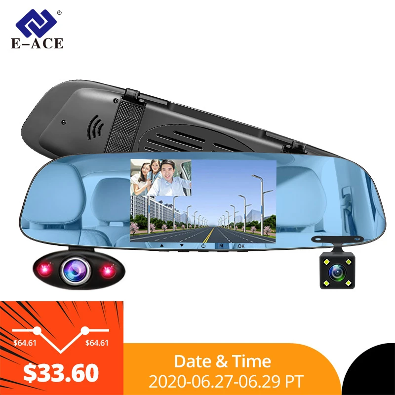 E-ACE Автомобильный Dvr тире камера 10 дюймов потоковое зеркало заднего вида 1080 P видео регистратор Авто регистратор двойной объектив с камерой ...
