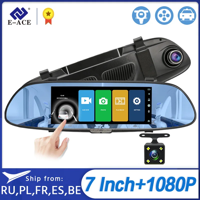 E-ACE Автомобильный видеорегистратор Full HD 1080 P 7,0 дюймов ips сенсорный видеорегистратор камера двойной объектив с камерой заднего вида авто рег...