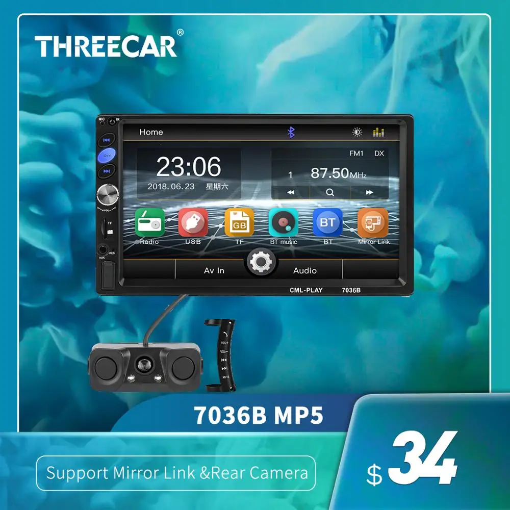 7036B 7 "2 Din сенсорный экран стерео MP5 плеер сабвуфер Bluetooth авто FM Радио авторадио Зеркало Ссылка Android резервного копирования камера