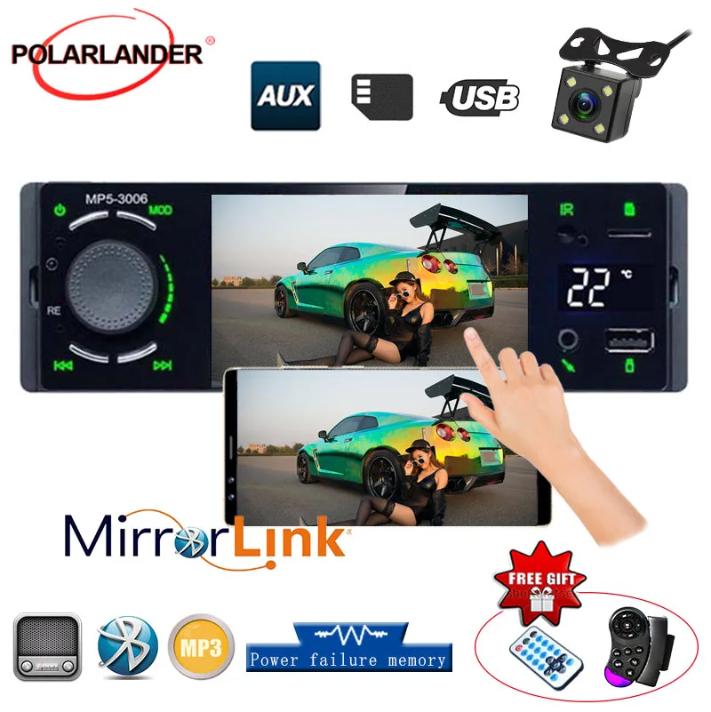 Автомобильный радиоприемник с Bluetooth 1 Din вид камеры usb плеер Aux сенсорный экран 1 Din зеркальная ссылка 3006