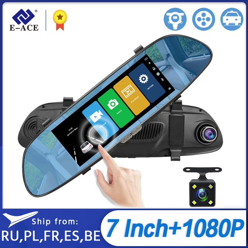 E-ACE Автомобильный видеорегистратор зеркальный видеорегистратор FHD 1080P автомобильная камера с двойным объективом с камерой заднего вида авт...
