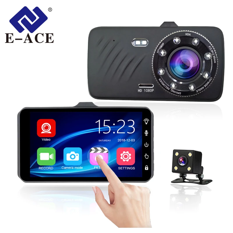 E-ACE Автомобильный dvr 4 дюймов Сенсорная автоматическая камера двойной объектив Dashcam FHD 1080 P регистратор с камерой заднего вида регистратор ви...