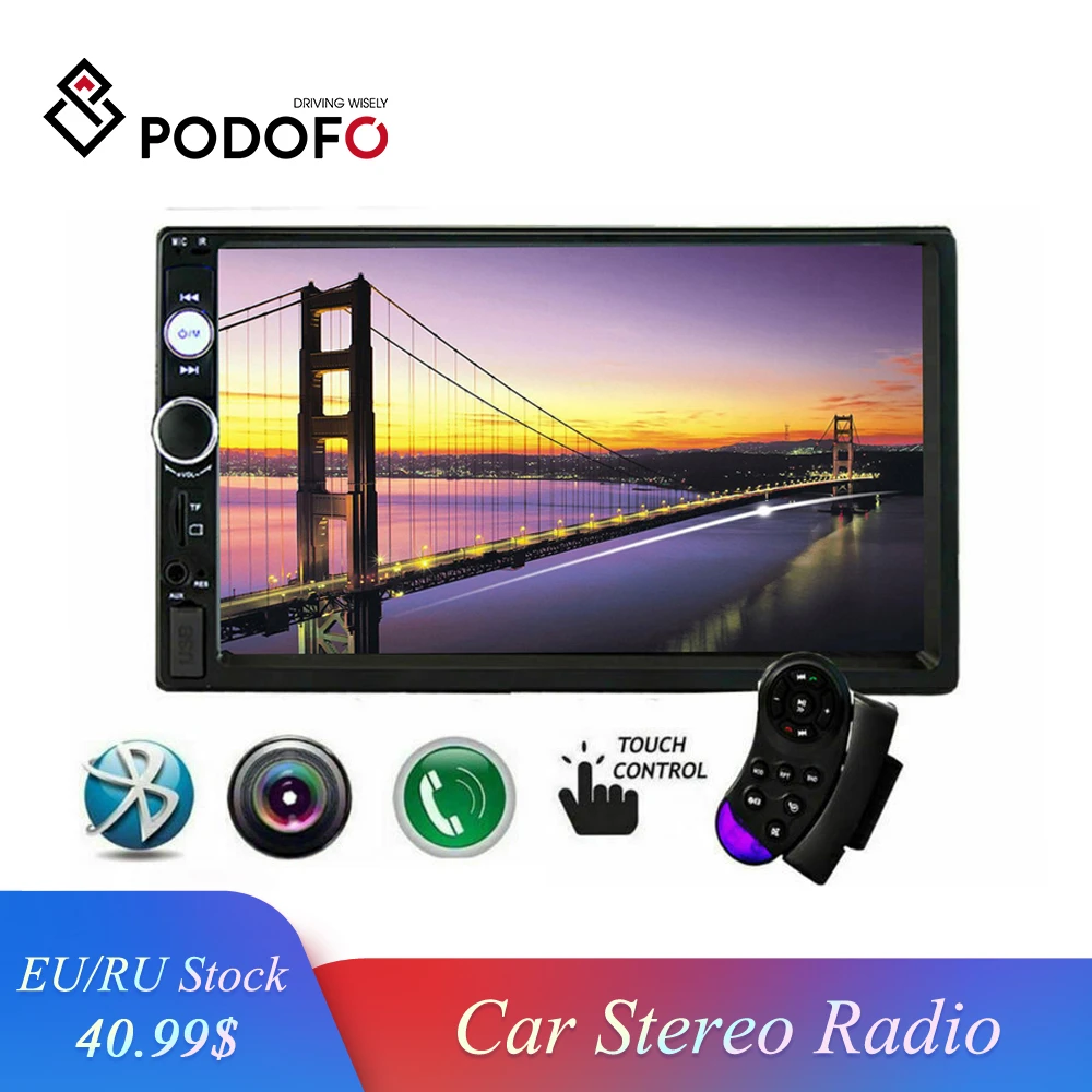 Podofo 2 din автомобильный радиоприемник 7 ''HD сенсорный экран авто радио MP5 мультимедийный плеер Bluetooth стерео для автомобиля с USB TF FM AUX камера задн...